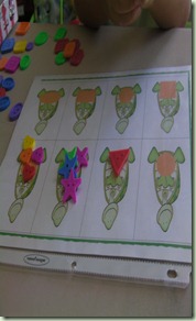 She worked on pre-writing skills which I am happy to say she finally realized she had to follow the lines not just connect the pictures! YAY!